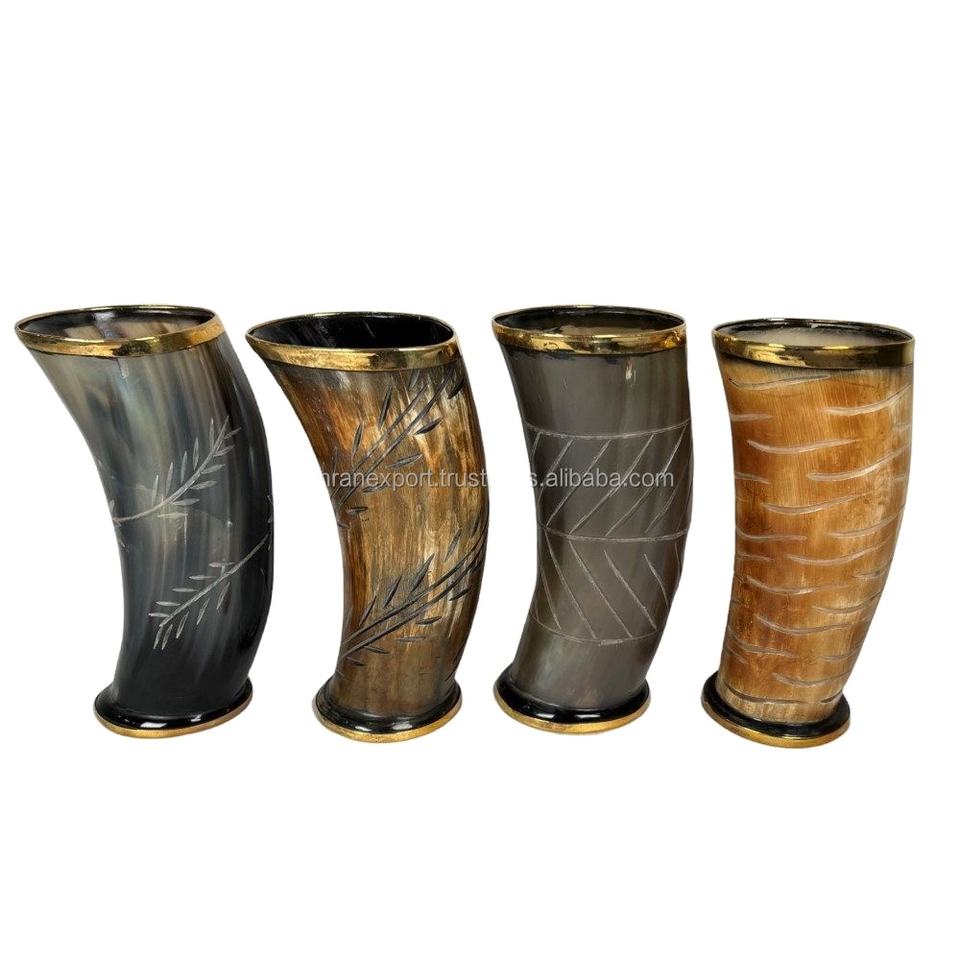 Tasse en corne véritable de style indien et américain, qualité supérieure, rustique, 200 ml, écologique, pour la maison, le bureau, cadeau d'affaires