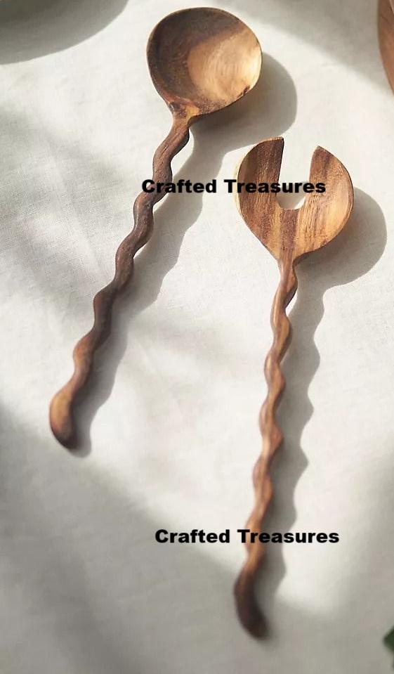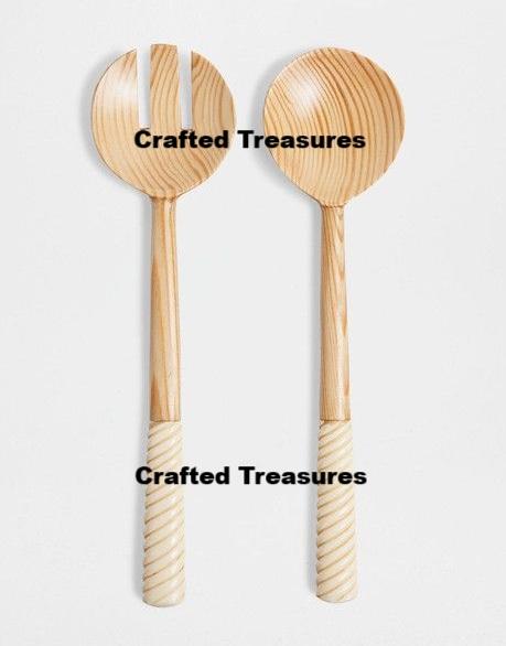 Ensemble de serveurs à salade de qualité supérieure manche en bois naturel et fourchette et cuillère en acier inoxydable outil de cuisine de mélange de salade personnalisé