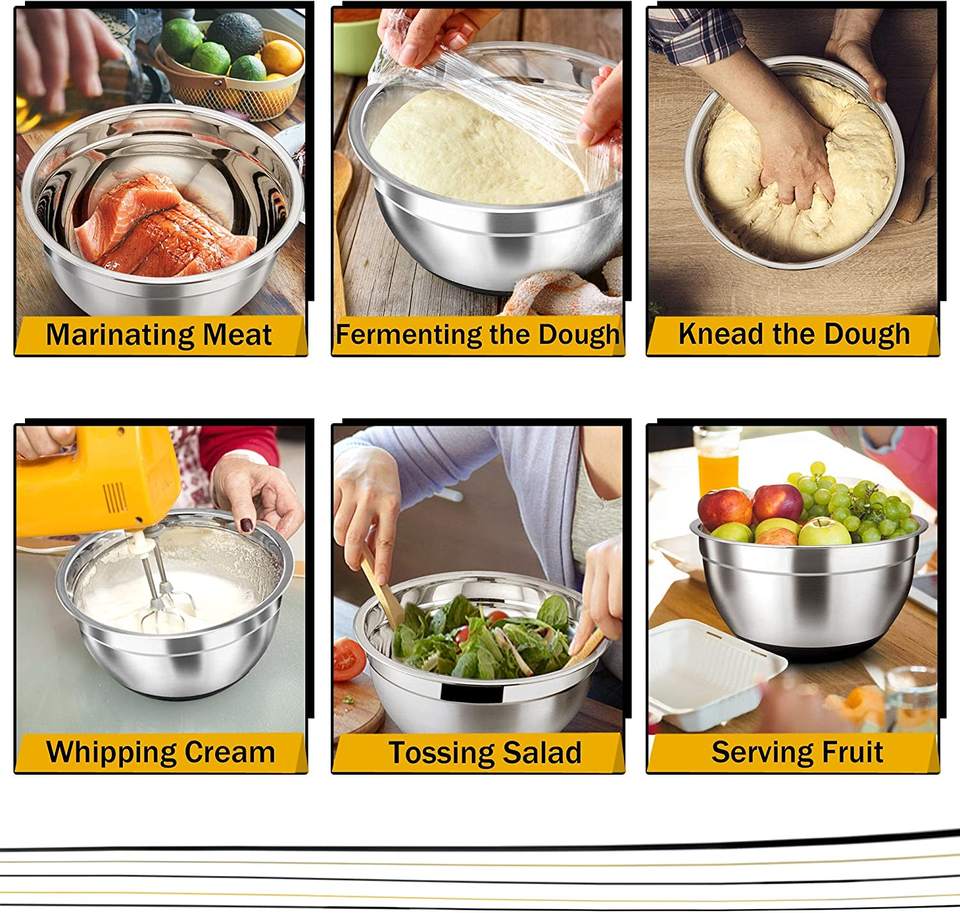 Product name:Stainless steel German bowl with silicone base and plastic lid