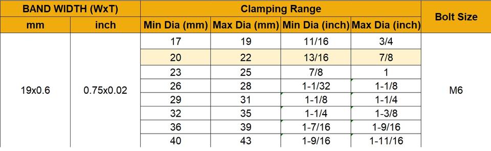 Pinces à bande autobloquantes en acier inoxydable 304 de qualité supérieure Système de mesure métrique de qualité industrielle de 19mm