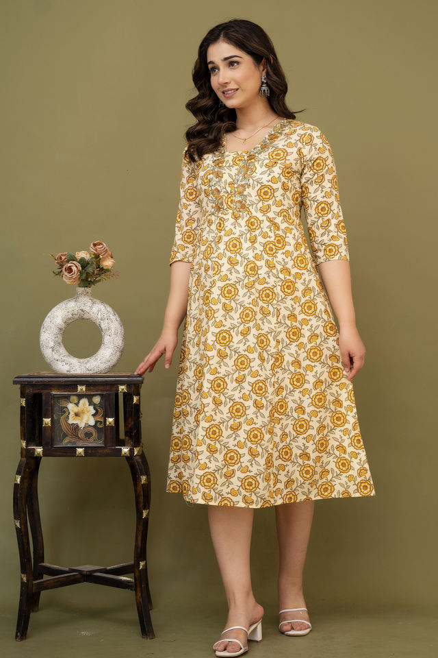 Robe courte de qualité supérieure avec broderie séquentielle sur le cou Tissu en coton Handloom Fabricant indien