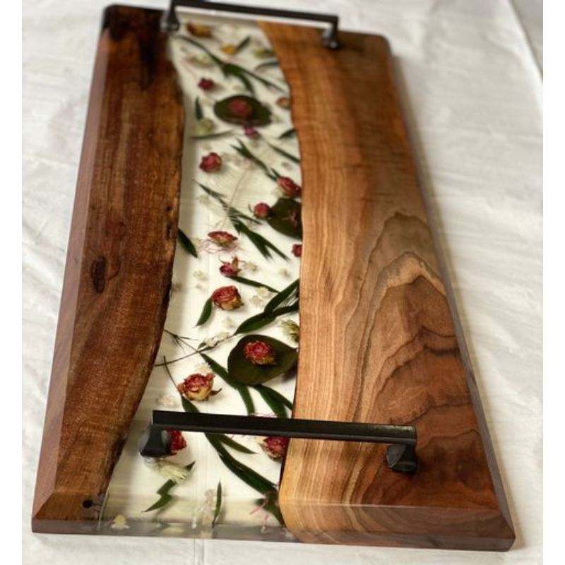 Premium Quality Single Piece Resin Serving Tray Hand-Crafted Wood Design for Restaurant Use and Food Occasions