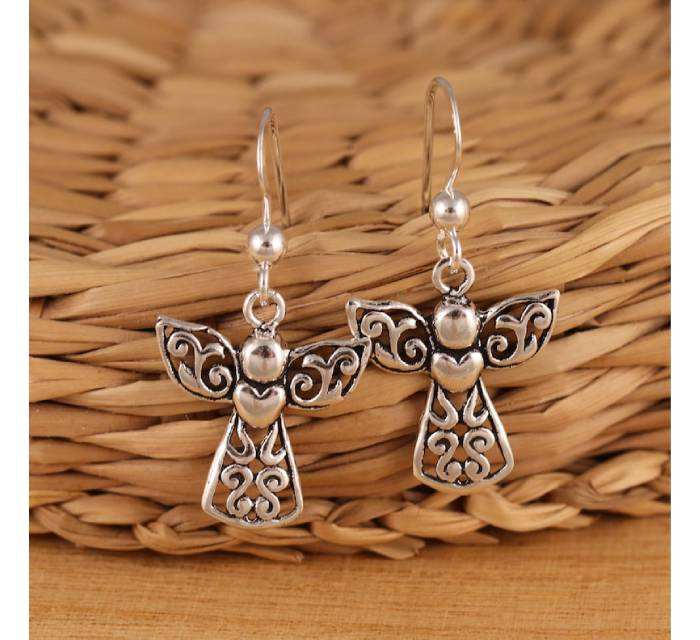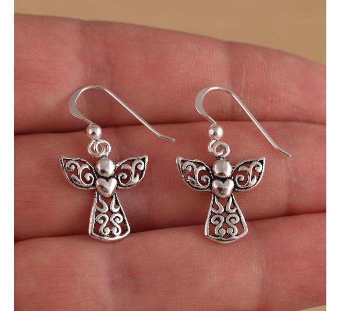Premium Quality Solid 925 Sterling Silver Dangle Earrings Fairy Guardian Angel Drop Design Stamped Fine Dangle Wedding Party