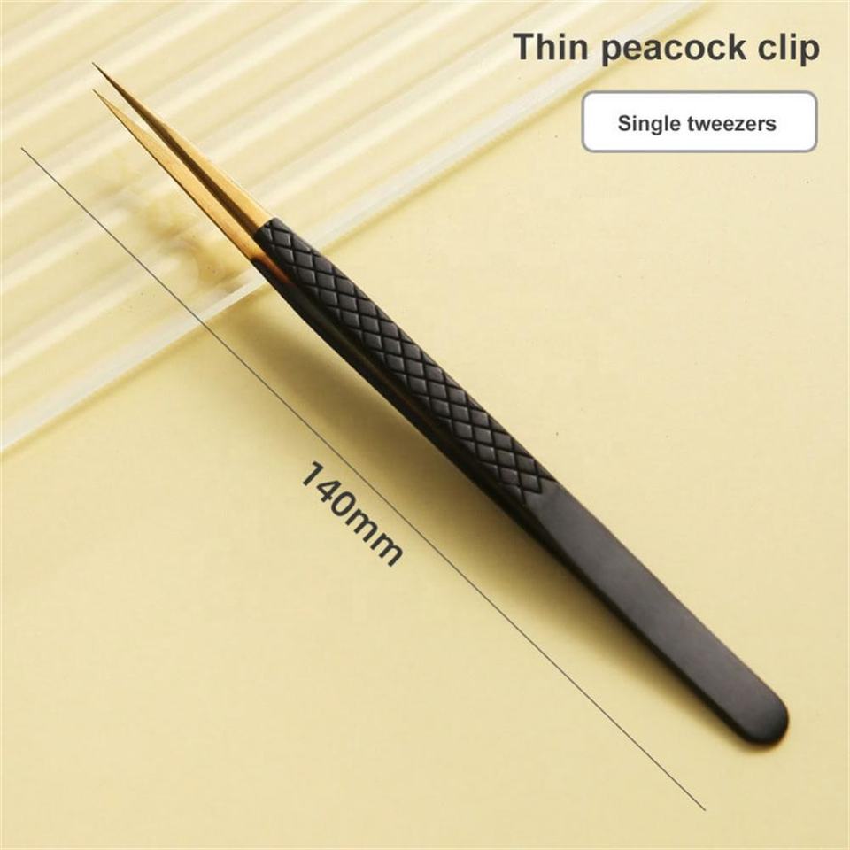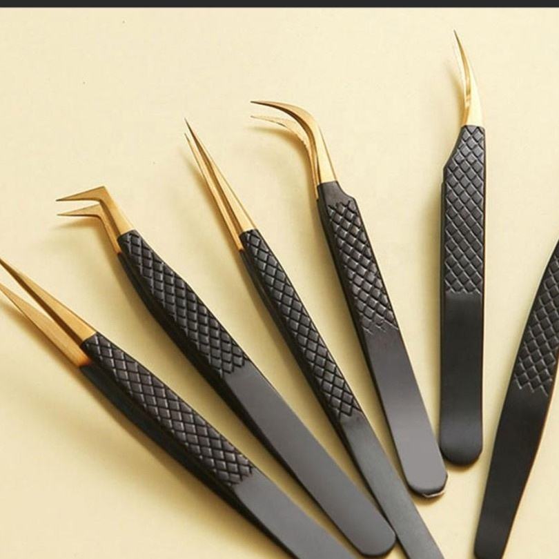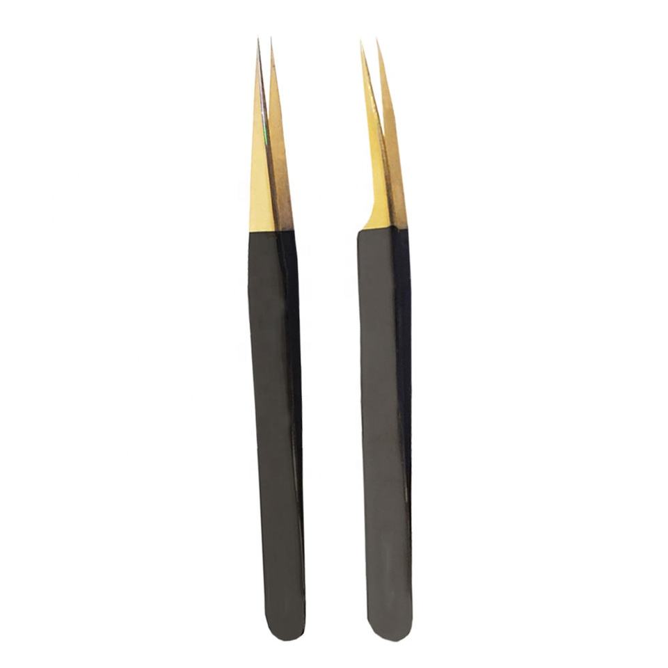 Ensemble de pinces à épiler professionnelles personnalisées en acier inoxydable noir et or avec diverses options de couleur à pointe pointue