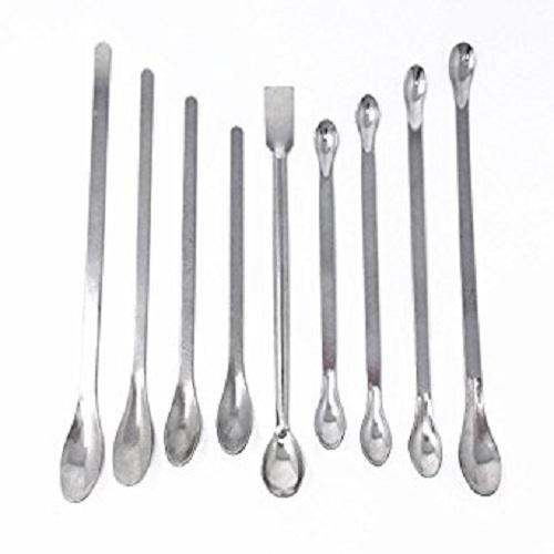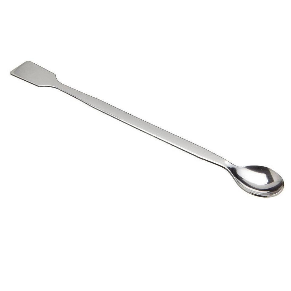 Spatule de laboratoire en acier inoxydable argenté de qualité supérieure, à une face plate et une face cuillère, personnalisable OEM, différentes tailles, pour laboratoire