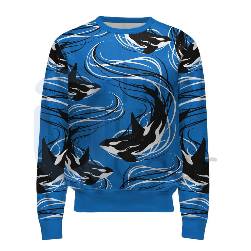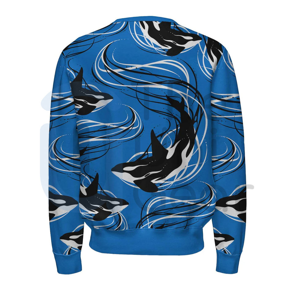 Sweat-shirt de qualité supérieure polaire lourde impression personnalisée broderie poisson conception unisexe Streetwear manches longues t-shirt d'hiver