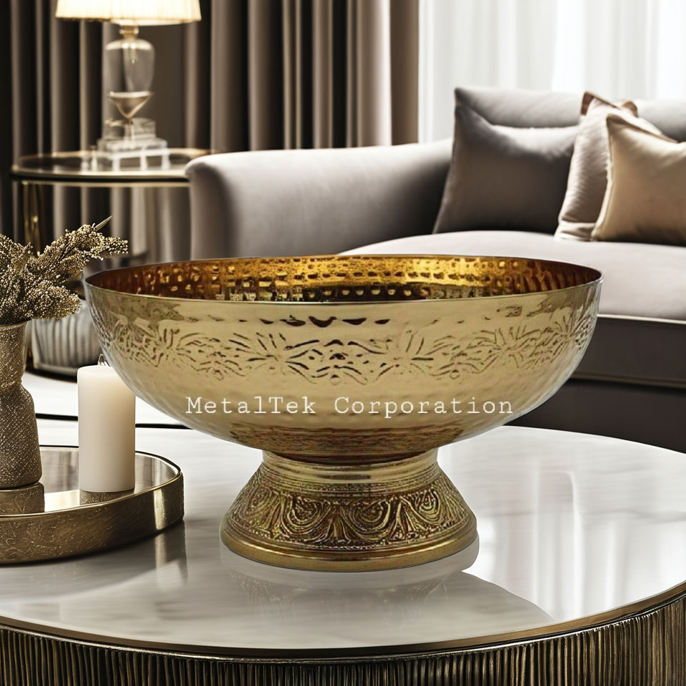 Design texturé de qualité supérieure bol à offrir en chocolat décoratif doré Style arabe bas prix bols à fruits en métal de luxe pour la maison