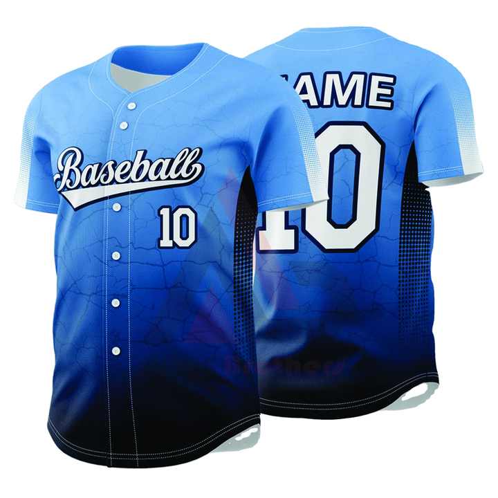 Maillots de baseball personnalisés unisexes de qualité supérieure, sublimation, blanc, bleu ciel rayé, respirant, antibactérien, col en V, service OEM