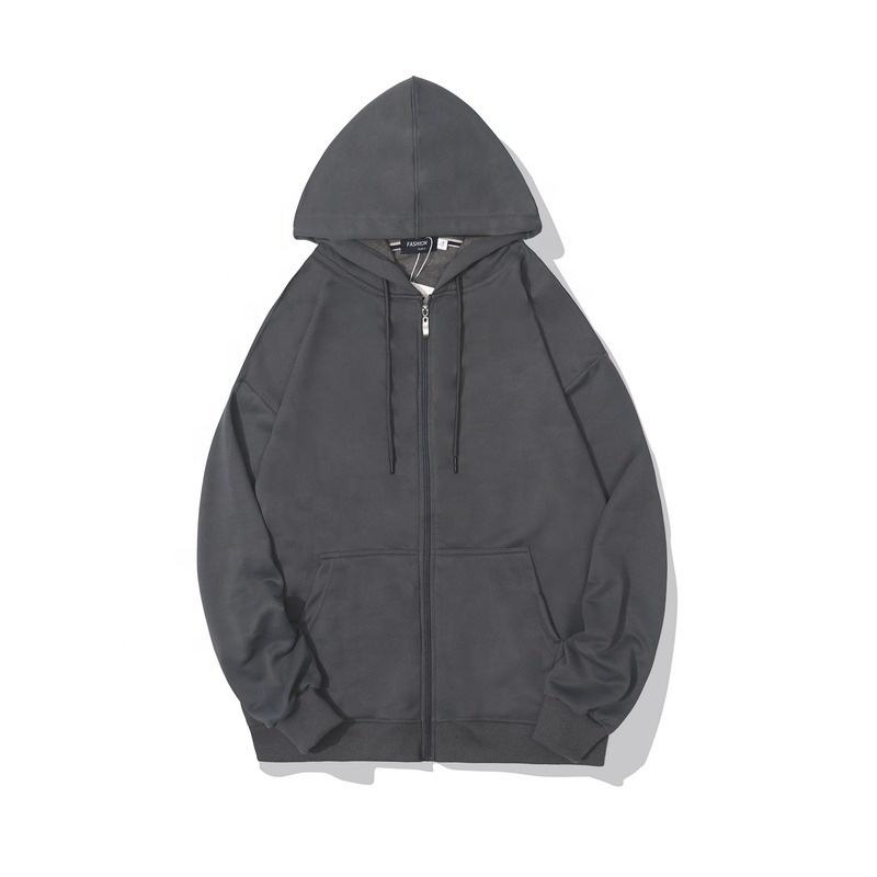 Sweat à capuche zippé unisexe personnalisé de qualité supérieure sérigraphié avec broderie avec logo personnalisé Sweatshirts pour hommes de couleur unie de grande taille