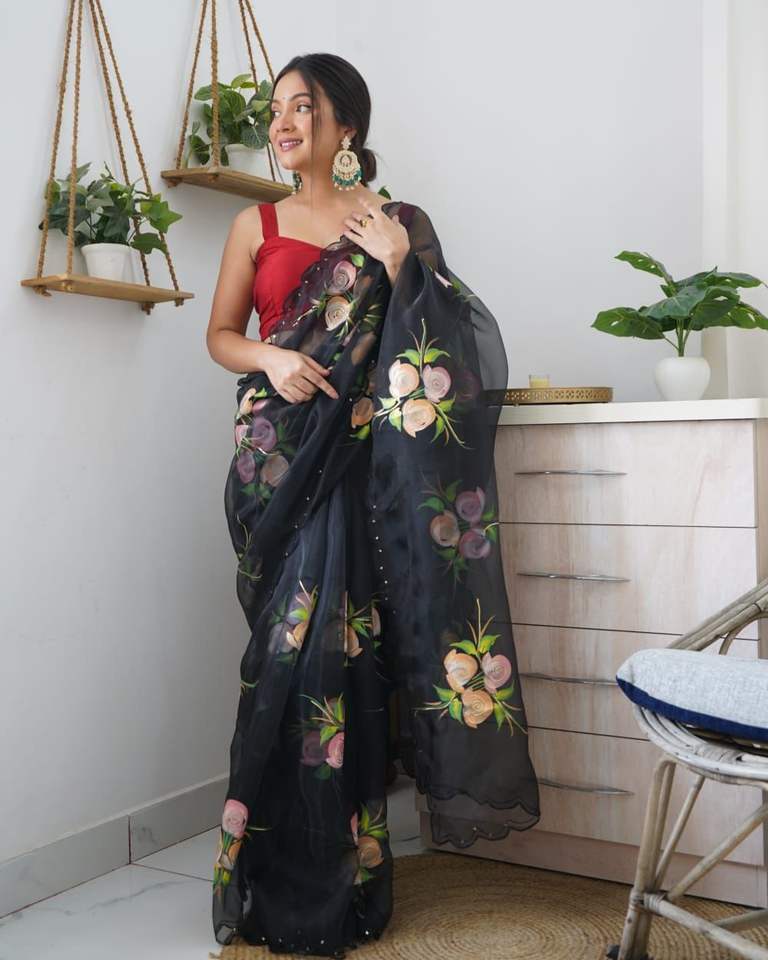 Product Name:Wedding Wear Pure Organza Silk Handprinted Work Saree Blouse