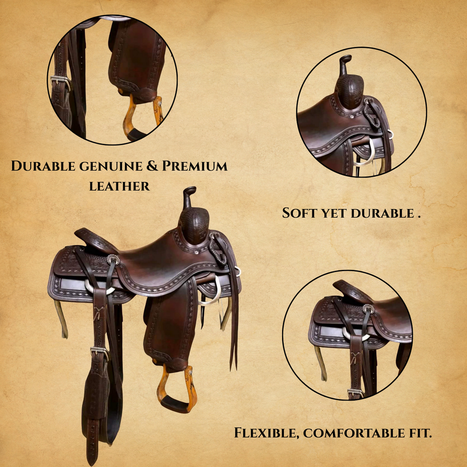 Qualité supérieure Western Barrel Racing Horse Saddle Tack Western Pleasure Trail Cowboy Tack en cuir