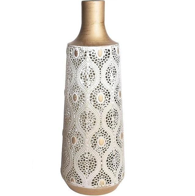 Pot de fleur métallique de qualité supérieure avec travail douloureux en or et blanc bureau dessus de table salon chambre Vase décoratif