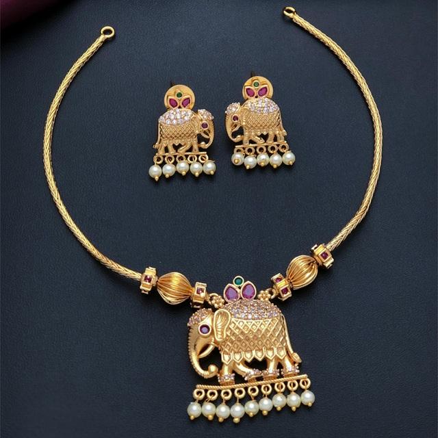 Qualité supérieure avec des pierres simples collier à chaîne en plaqué or de créateur serti de boucles d'oreilles pour la collection de mariage pour les femmes