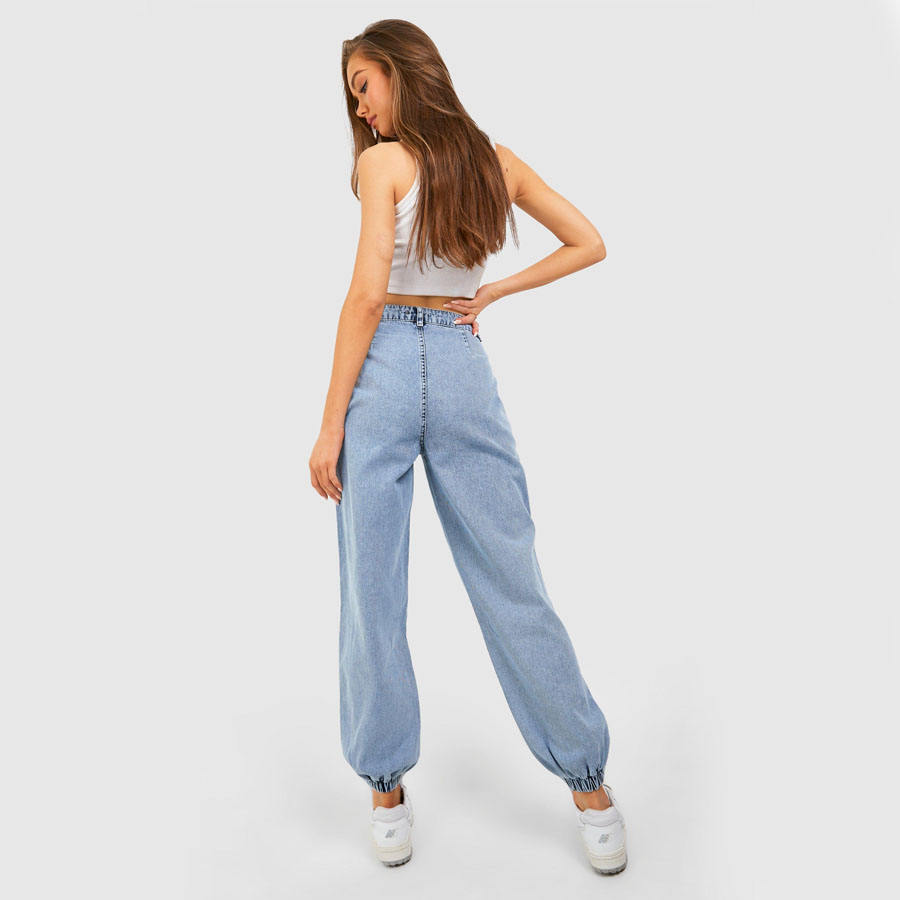 Premium Quality Women Light Blue Stone Washed Denim Jogging Trouser With Elastic Waist and Side Pocket
