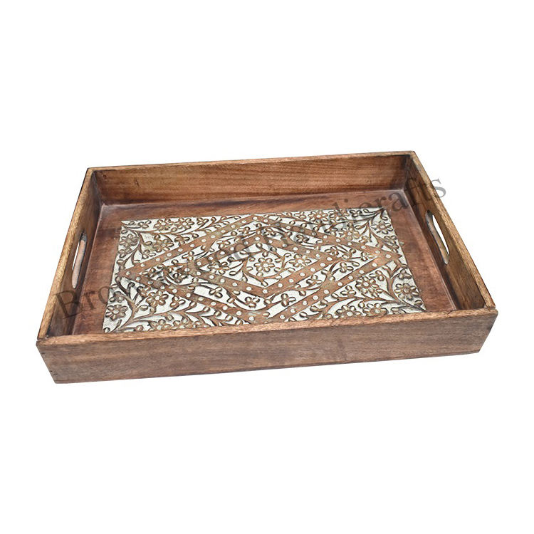 Wooden Hand Carved Serving Tray With HandlesProduct Name