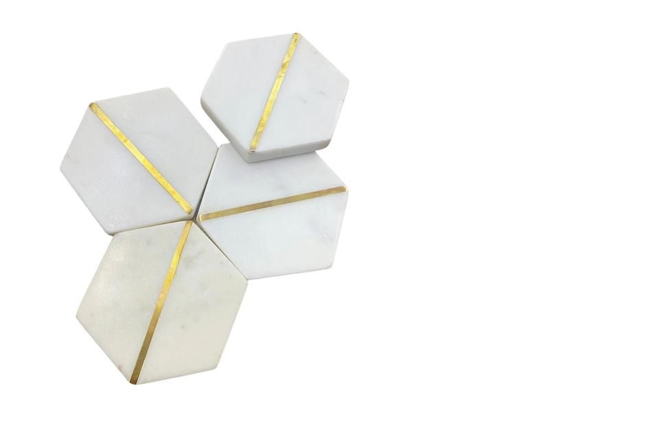 Ensemble de 4 sous-verres en marbre blanc rond de qualité supérieure en pierre polie style 'Love' pour la décoration intérieure