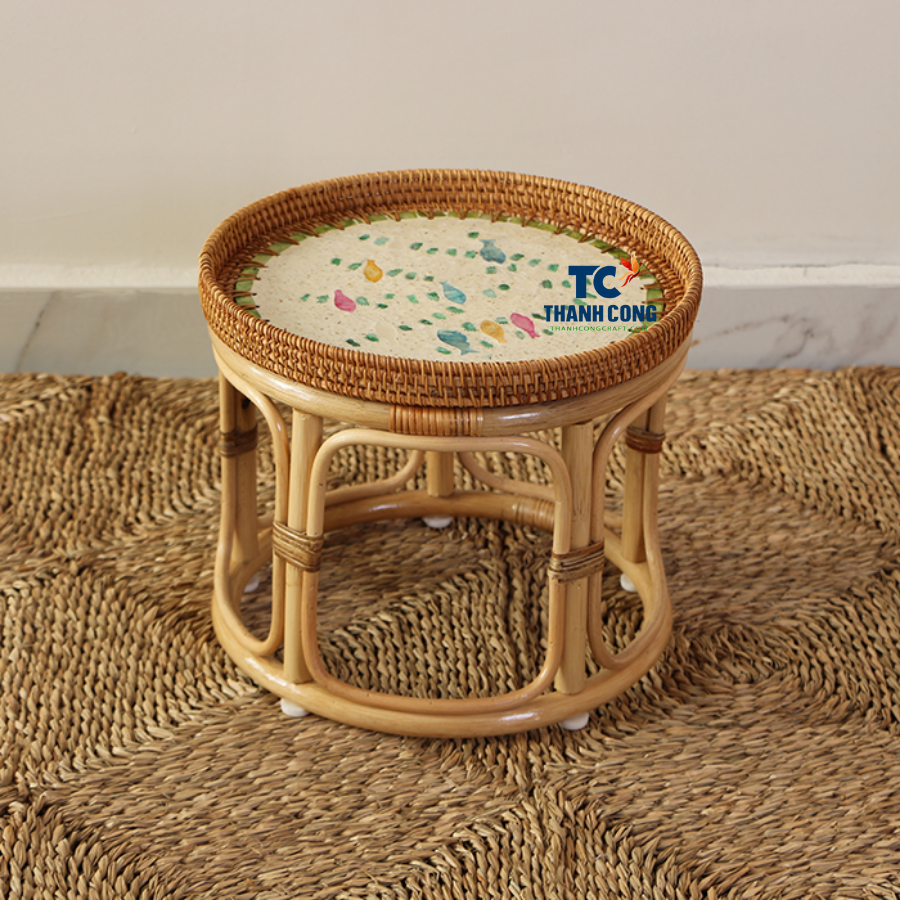Nom du produit:Table en rotin avec incrustation de nacre