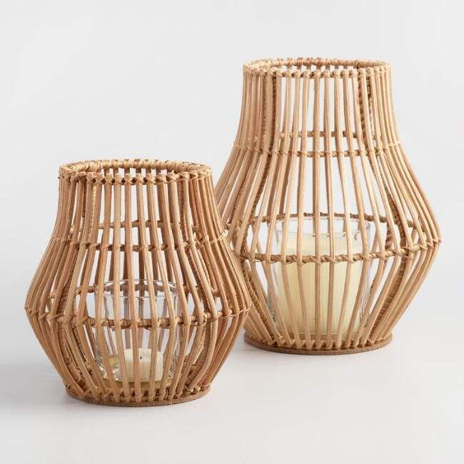 Porte-bougie en rotin de qualité supérieure avec texture naturelle en canne, construction durable, éclairage élégant pour la maison