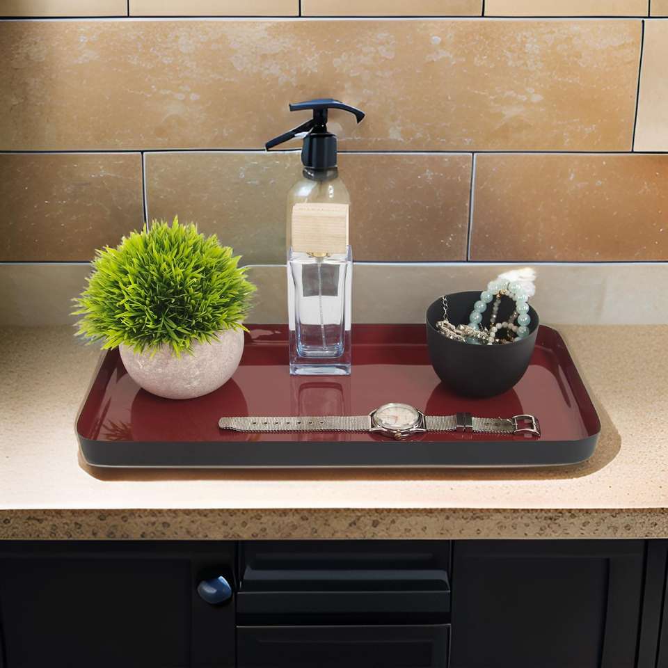Plateau rectangulaire en fer de qualité supérieure, finition marron miroir élégante, durable et résistant à la rouille, parfait pour la décoration de la maison, le café ou le service.