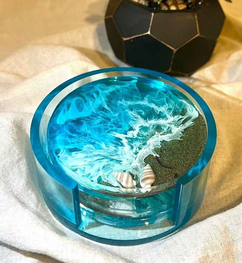 Sous-verre en résine de qualité supérieure conçu avec une finition artisanale artistique offrant une protection de table et un attrait élégant pour le salon