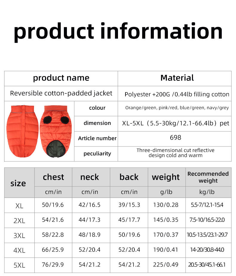 Manteau réversible haut de gamme pour animaux de compagnie, classique, en coton et polyester, chaud, pour l'automne et l'hiver, veste gilet, équipement d'extérieur, vente en gros