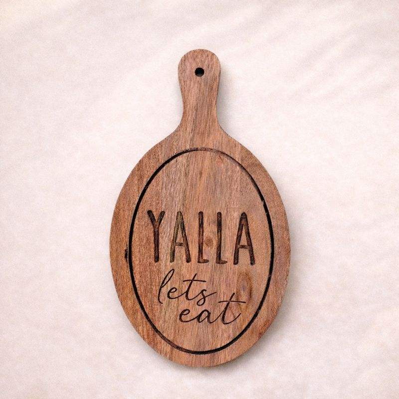 Plateau de service rond de qualité supérieure avec élégante calligraphie arabe, finition lisse et durable, idéal pour servir l'Iftar, cadeau de Ramadan