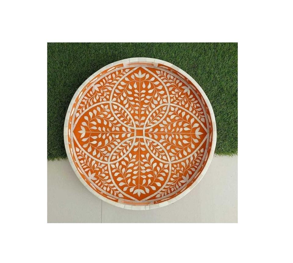 Plateau de service rond en résine haut de gamme, fait main, durable, avec motif floral, finition lisse pour une utilisation quotidienne et une présentation élégante
