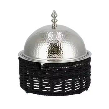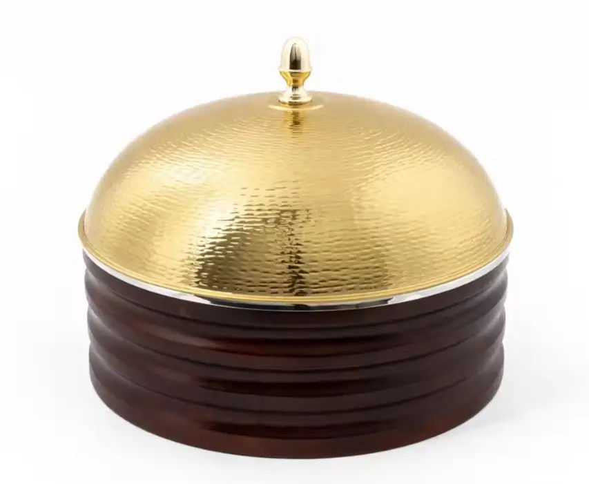 Casserole artisanale en acier inoxydable de style américain, forme irrégulière, avec support en bois, revêtement antiadhésif extérieur, écologique