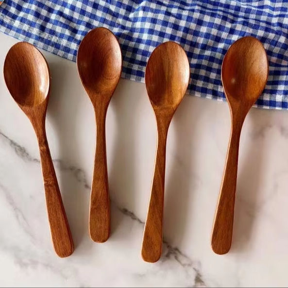 Cuillère de service en bois naturel rustique de qualité supérieure, à long manche, outil de cuisine en bois fait à la main, résistant à la chaleur, passe au lave-vaisselle, cuisine
