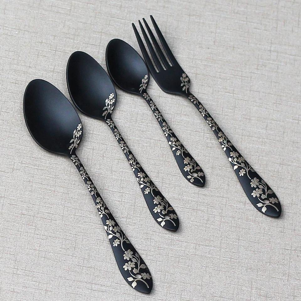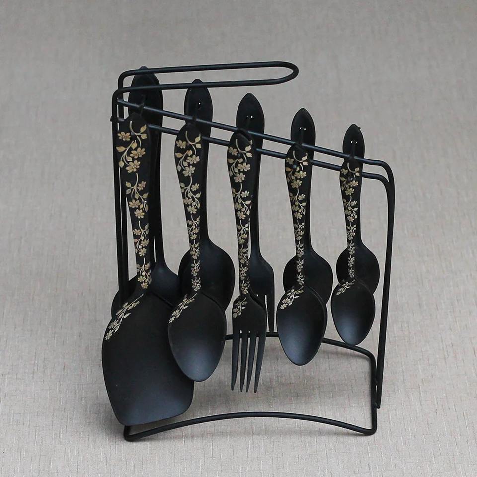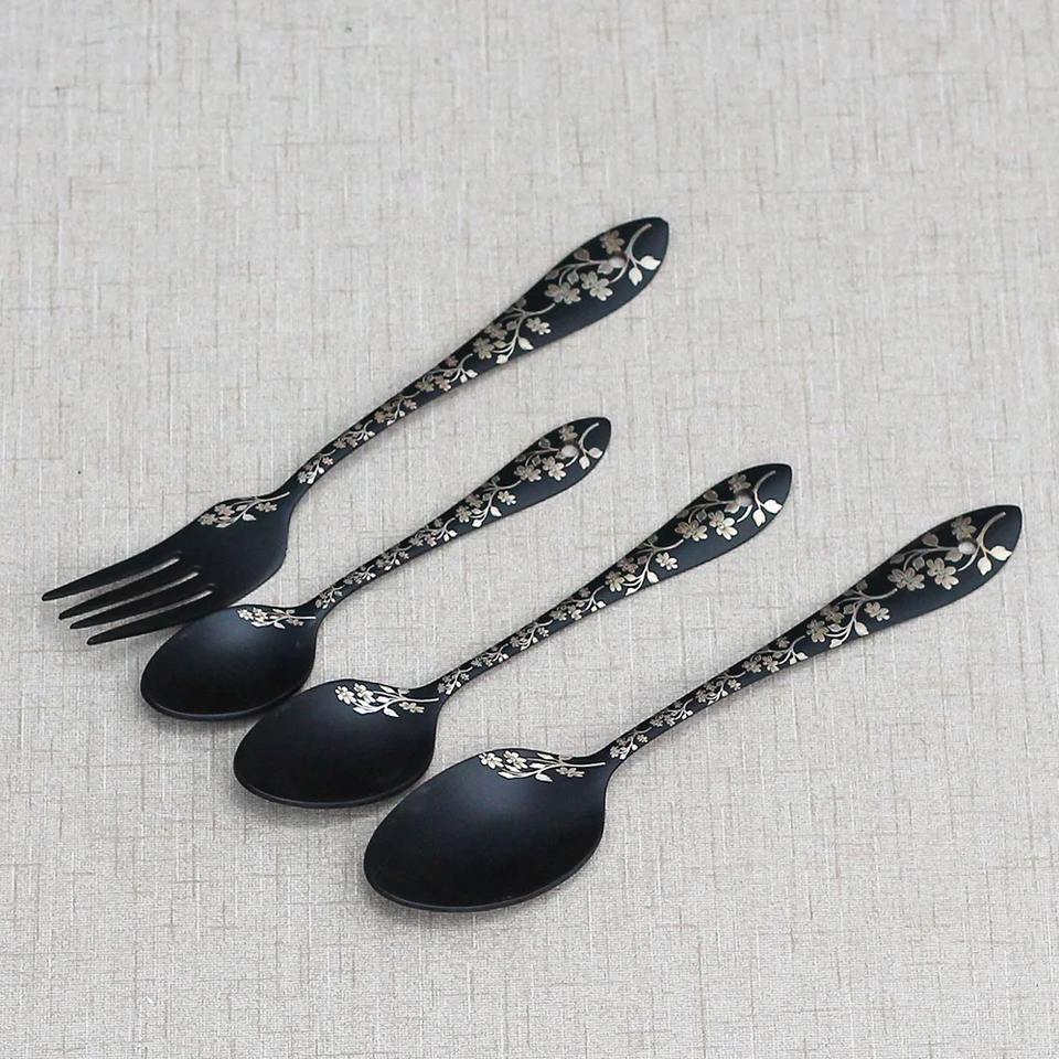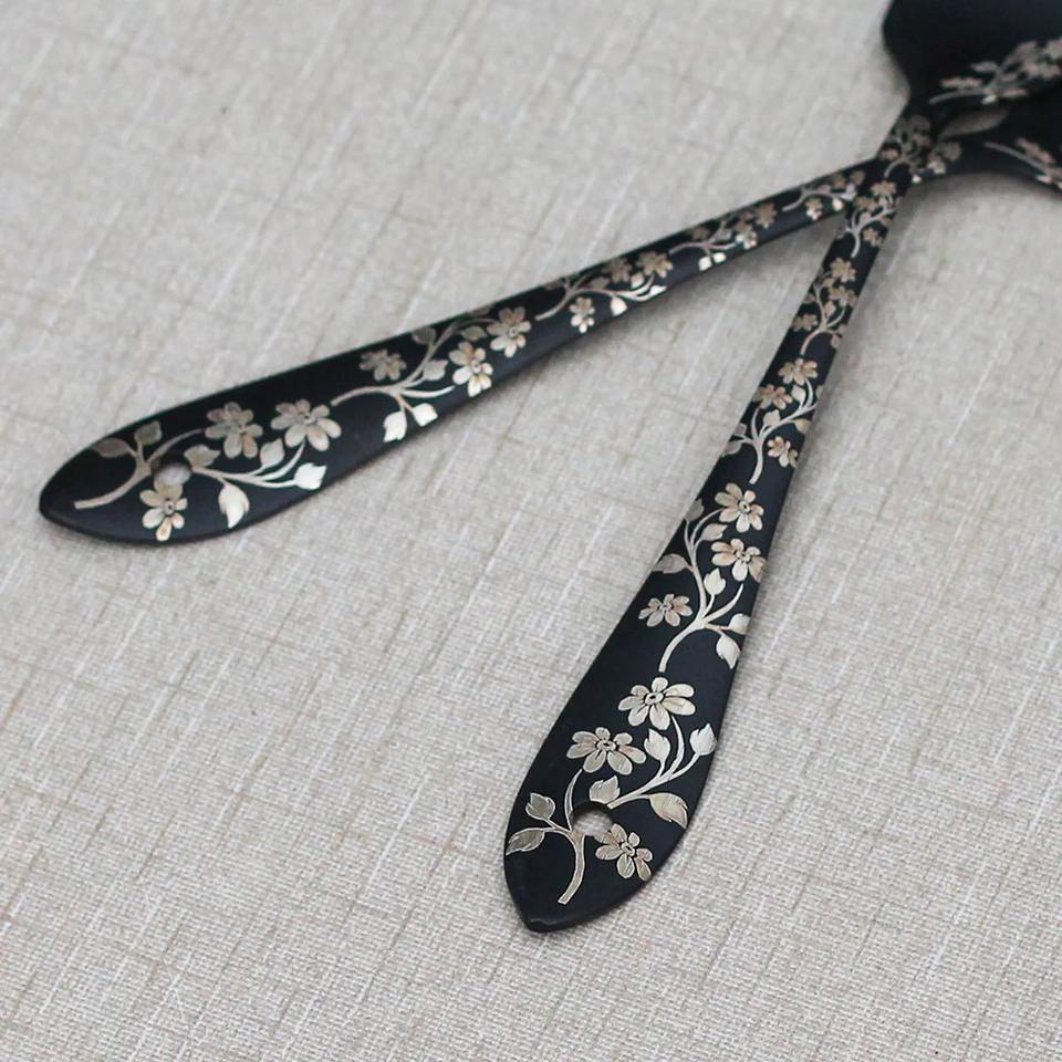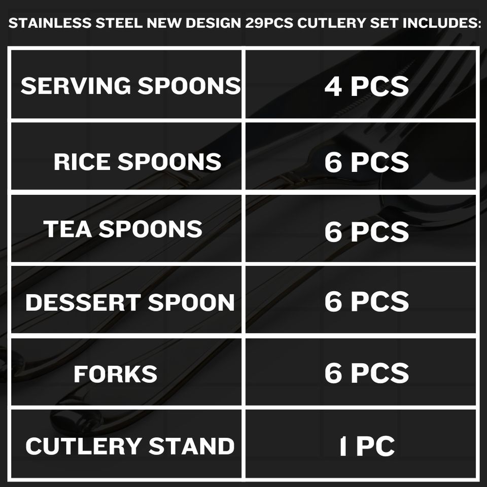Ensemble de couverts en acier inoxydable de qualité supérieure SAZ ENTERPRISES, 29 pièces, modèle ALI-532, finition enduite de poudre, design élégant gravé