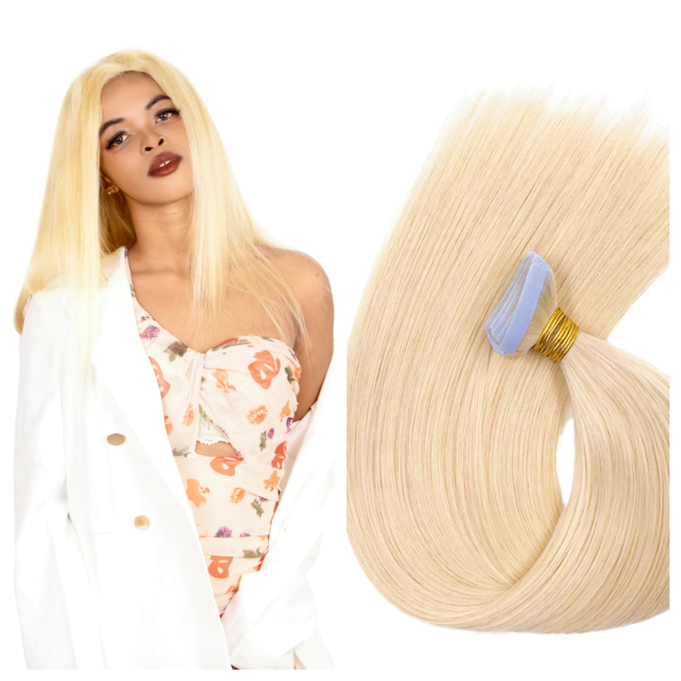 Extensions de cheveux naturels à bandes adhésives invisibles de qualité supérieure pour salon, double épaisseur, blond ombré, couleur claire, vente en gros
