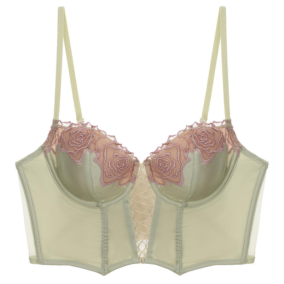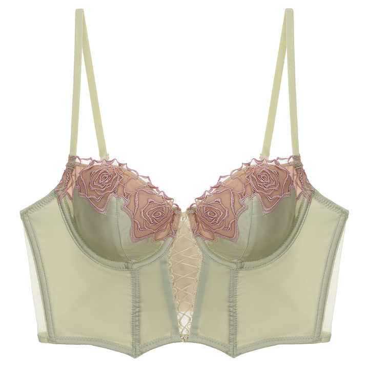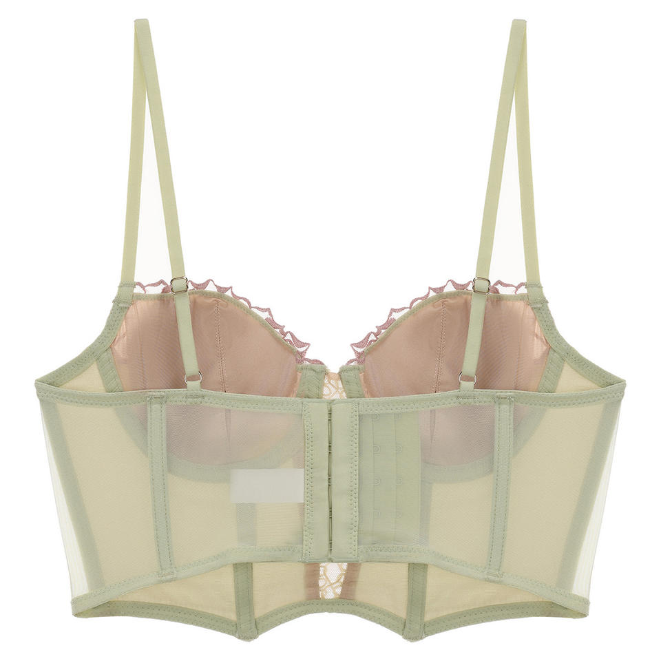 Haut corset en satin premium à motif arête de poisson, broderie personnalisée, camisole à fleurs en dentelle, streetwear décontracté, soutien-gorge vert élégant, lingerie sexy