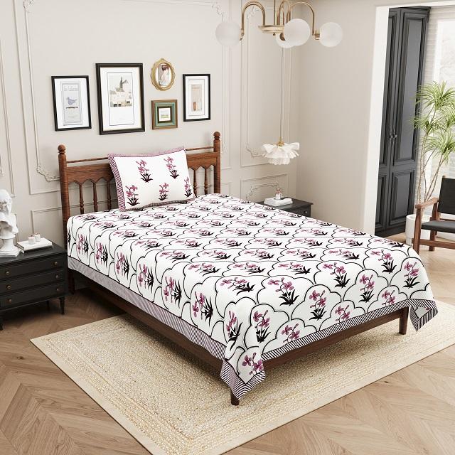 Parure de draps plats en coton 100% avec motif végétal sérigraphié de qualité supérieure, 1 taie d'oreiller, 300 fils au pouce carré, écologique