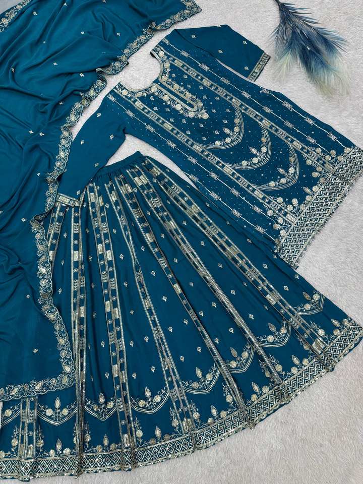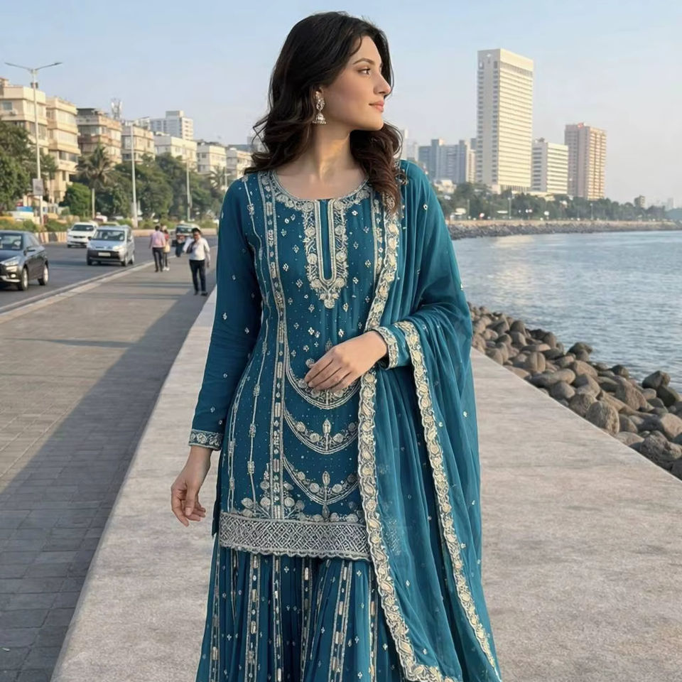 Ensemble Kurta et Palazzo Premium à Broderies – Entièrement Cousu, Prêt-à-Porter