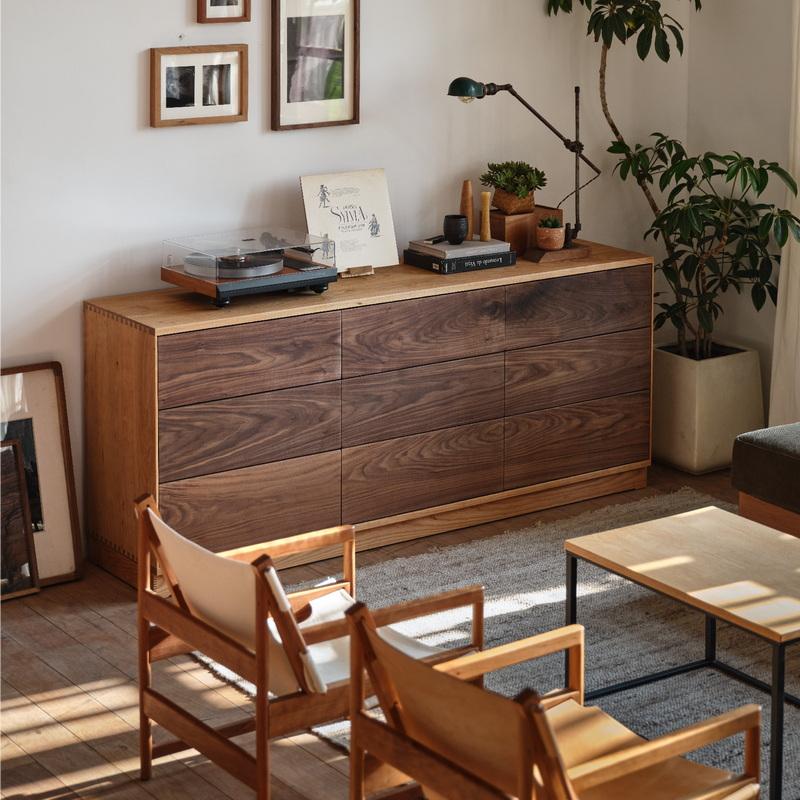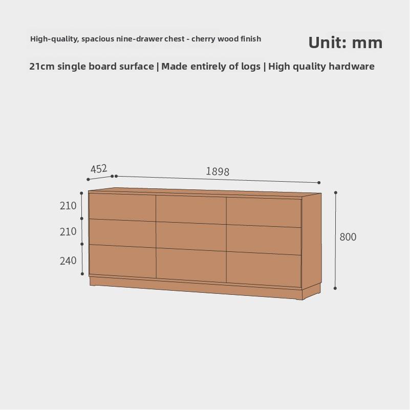 Armoire en bois massif de la série Premium à neuf tiroirs avec finition cerisier et noyer noir, fabriquée dans le Zhejiang