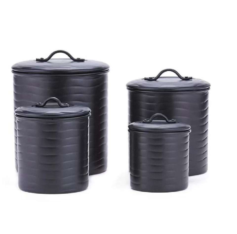 Ensemble de qualité supérieure de 4 conteneurs de stockage galvanisés noirs organisateur solide pour les restaurants et l'utilisation de stockage d'hôtel d'Inde
