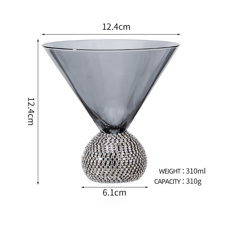 Premium Shaker Cocktail Bar Royal événements lunettes gobelet cristal diamant luxe fumé gris Martini Vino rouge vin verres ensemble