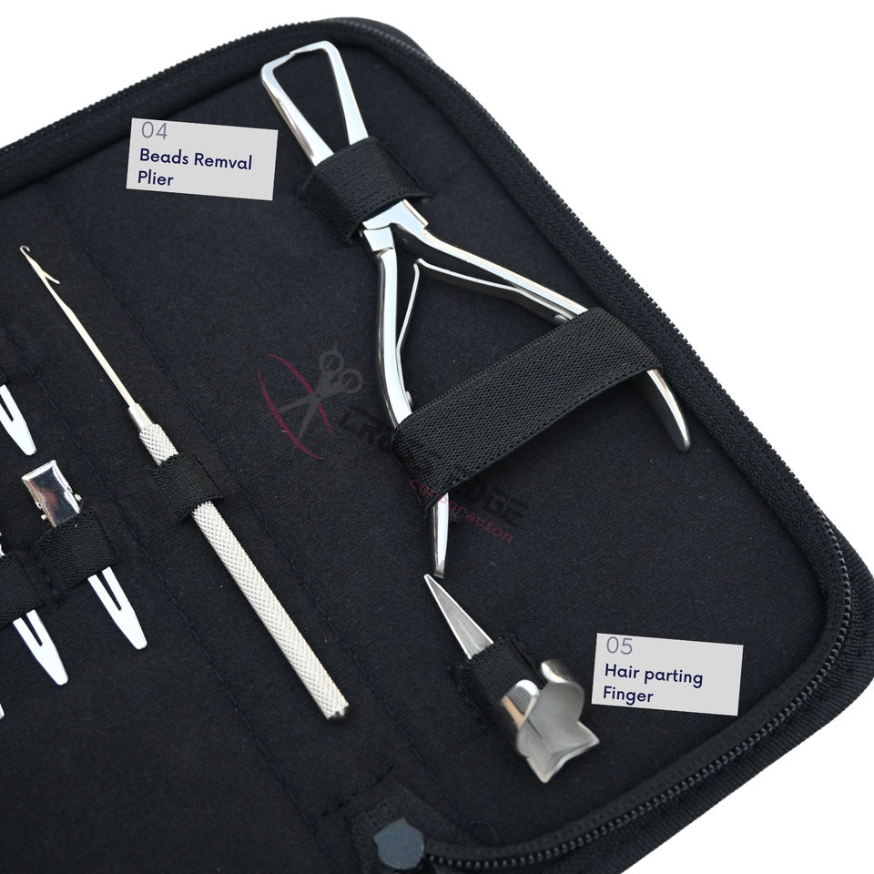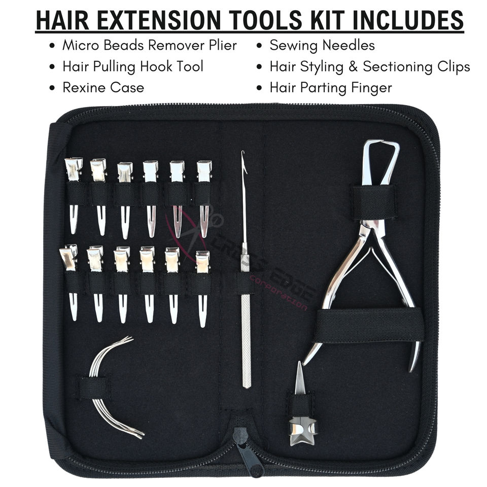 Kit de Styliste Premium pour Extensions de Cheveux Argentées : Dissolvant de Micro-Anneaux, Crochet de Tirage de Cheveux, Aiguilles Courbes, Pinces de Séparation, Doigtier de Séparation
