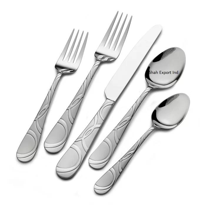 Ensemble de couverts en métal argenté de qualité supérieure avec poignée design pour ensembles de couverts de vaisselle de table de restaurant de fête d'hôtel