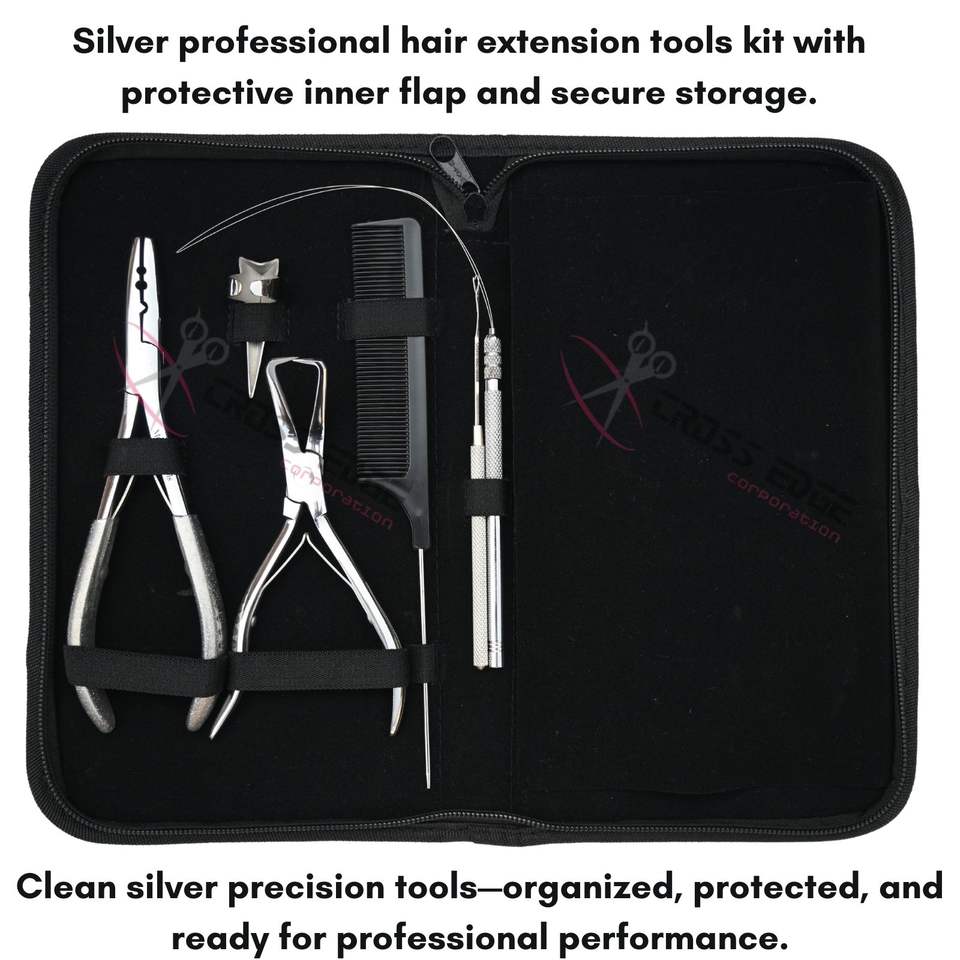 1 étui Kit d'outils pour extensions de cheveux avec acier inoxydable