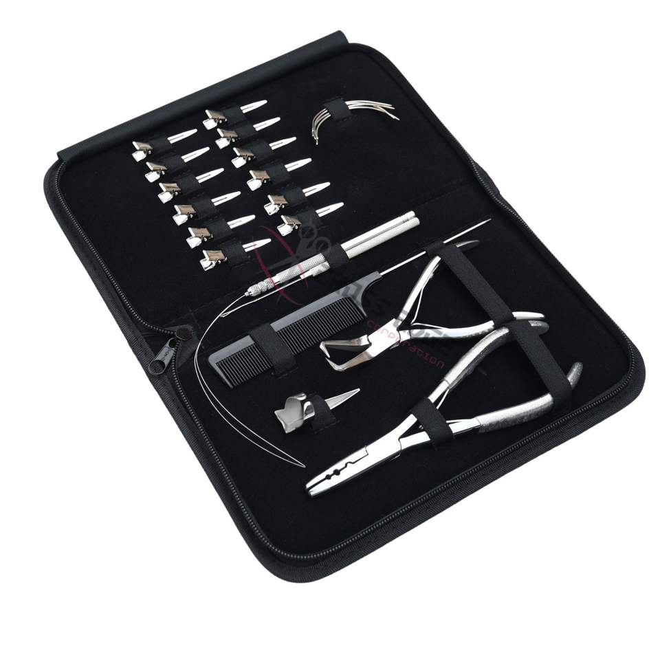Quantité minimale de commande:1 étui Kit d'outils pour extensions de cheveux avec acier inoxydable