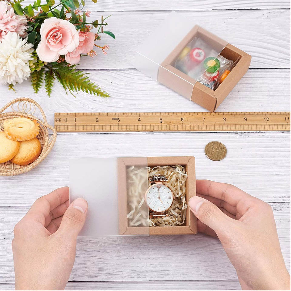 Petites boîtes kraft carrées de qualité supérieure pour emballage cadeau élégant avec papier de boîte de parfum Transparent Pvc Windows