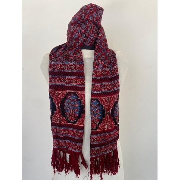 Étole d'impression Ajrakh de bloc de main de qualité supérieure en Ryon doux avec des détails artistiques riches lavables en Machine adaptés à l'ethnique et aux looks
