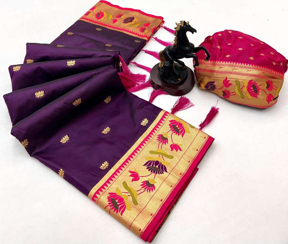 Premium Soft Silk Saree Pure Lotus Paithani Fabriqué à la main par des fabricants indiens