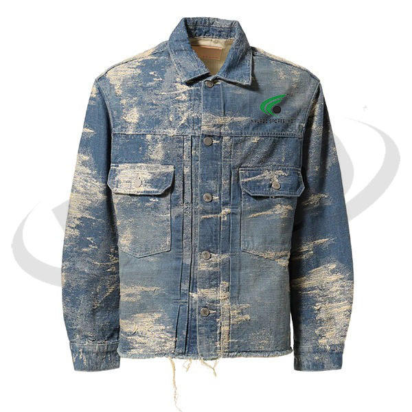 Veste en jean de couleur unie de qualité supérieure pour hommes Vestes de jean d'hiver d'usine OEM avec impression de logo personnalisée de haute qualité
