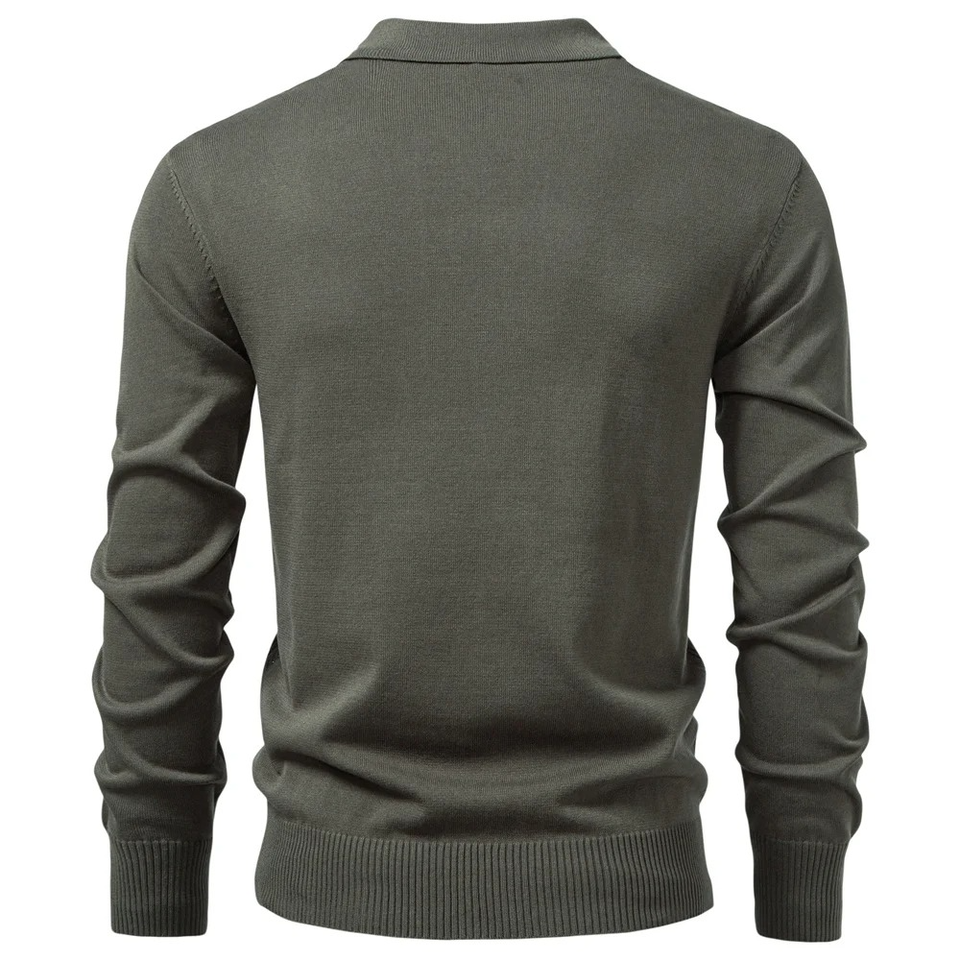Premium couleur unie Polo hommes Slim Fit Zip à manches longues luxe tissu texturé affaires décontracté hommes sweat