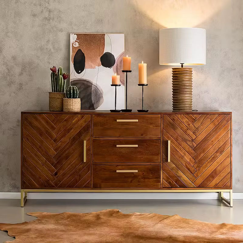 Buffet en bois de manguier massif de qualité supérieure avec 3 tiroirs et 2 portes - Design moderne européen modulaire et écologique