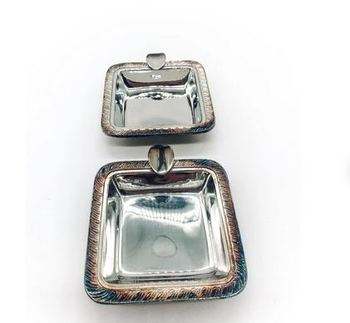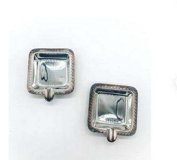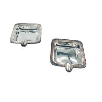 Premium Solid Set Of 2 Metal Silver Square Ashtray with Modern Design for Home Bars Restaurants and Office Smoking Accessories
