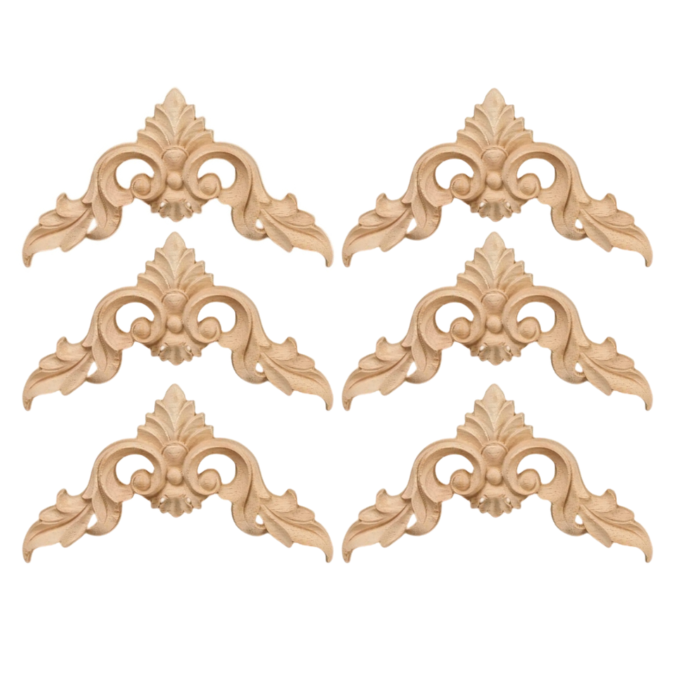 Premium Solid Wood Carved Onlays Sculpture Customized Floral Wood Applique Bedroom Cabinet Decoration Luxury Solid Wood Onlays