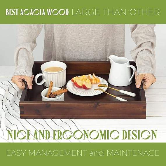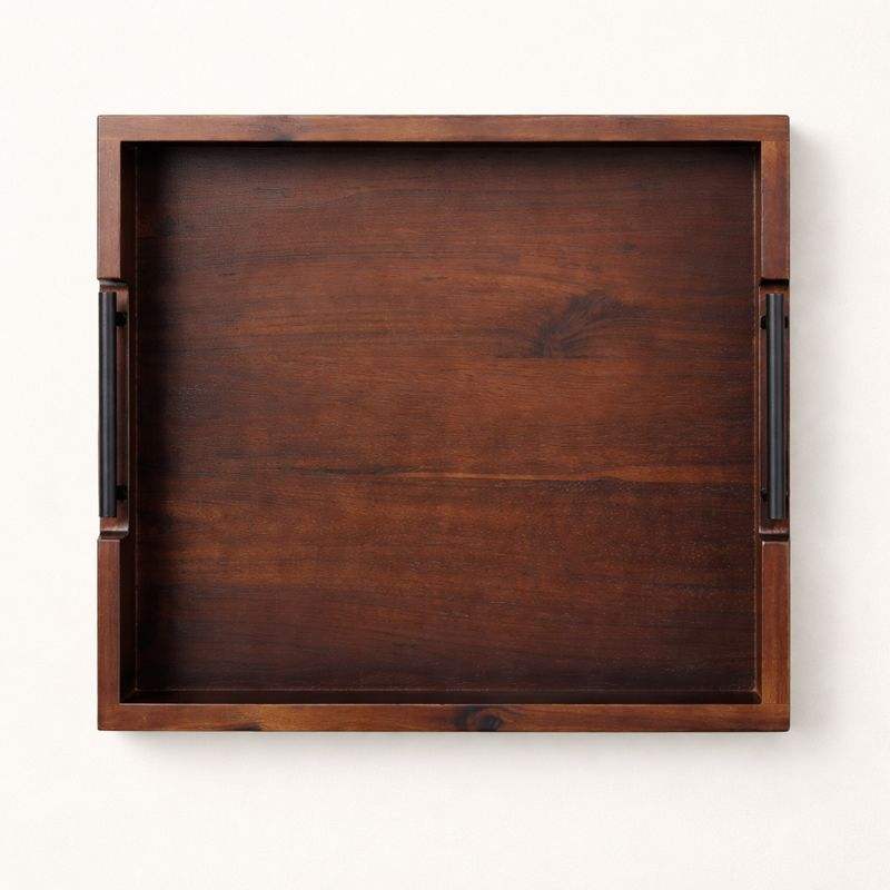 Plateau de rangement en bois massif de qualité supérieure avec poignées latérales en métal noir robustes, cadre profond pour cuisine, salle à manger, table basse, décoration intérieure